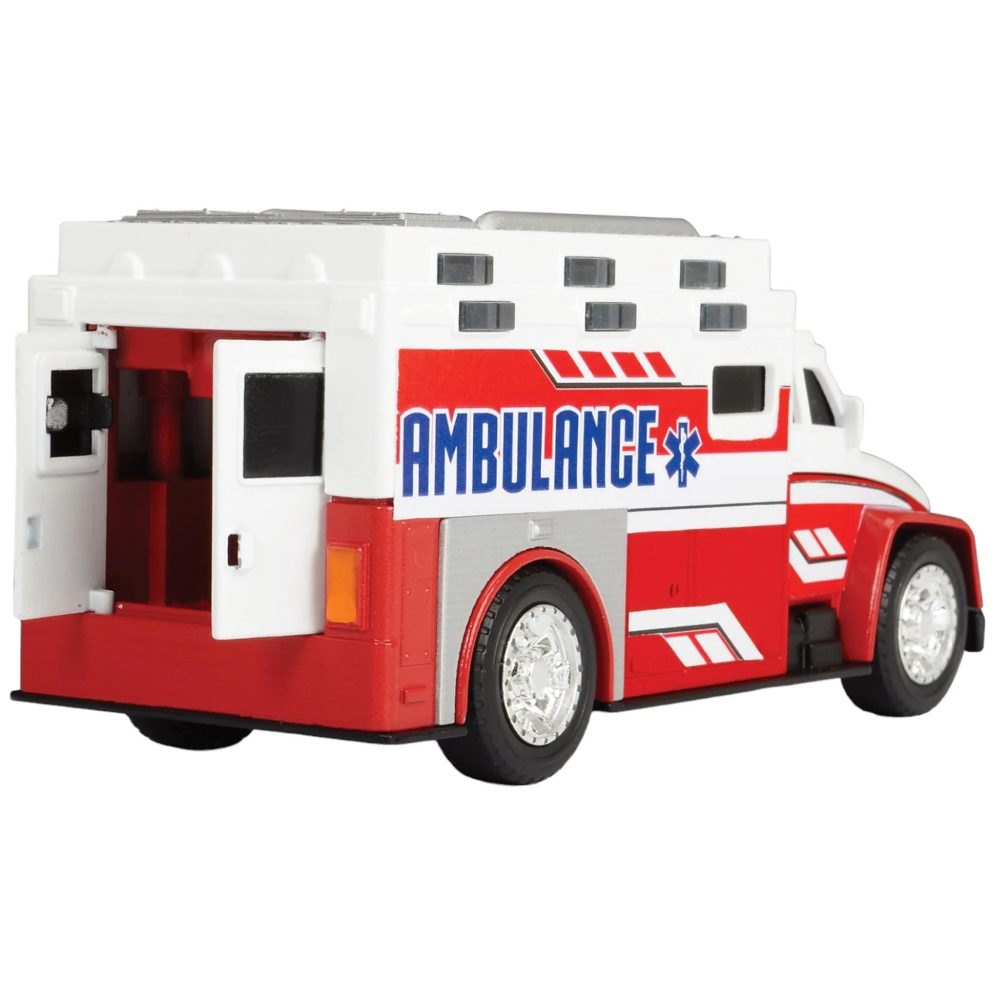 The city ambulance with light and sound effects from Dickie Toys Adventure Force: Rescue is a matter of honor! If children aged three years and above suddenly want to become doctors or paramedics after playing with the Mini City Ambulance Rescue Vehicle, it's no wonder. The lovingly designed toy vehicle with light and sound functions arouses curiosity about work and rescue work in general. The rear door can be opened and the batteries are already included, allowing rescue work to begin immediately.