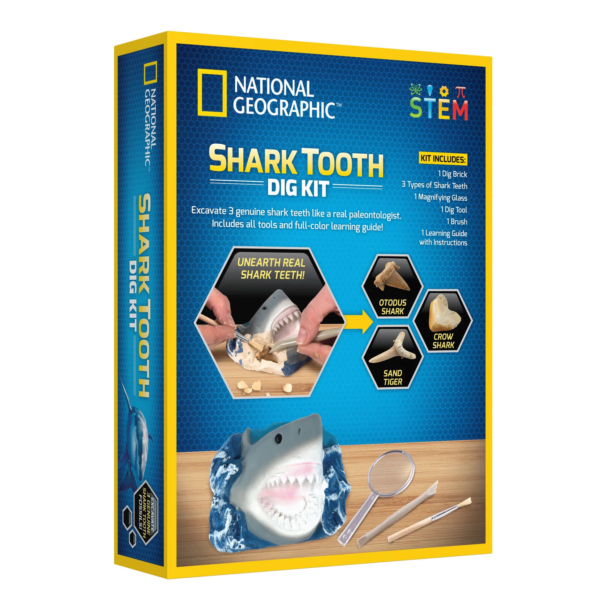 National Geographic’s Shark Tooth Dig Kit lets children dig up and explore fossils from three different species of shark. With a full-colour learning guide full of amazing shark facts and pictures, kids will have a blast while they identify the teeth of the Sand Tiger, Otodus, and Crow Sharks, and learn all about what makes sharks the ocean’s most feared predators. This dig kit makes a great gift for any child ages 6-15 years with an interest in sharks, fossils, or science. With 3 amazing fossils to uncover, children can start an impressive fossil collection that they can show their friends. A favourite among both boys and girls!
